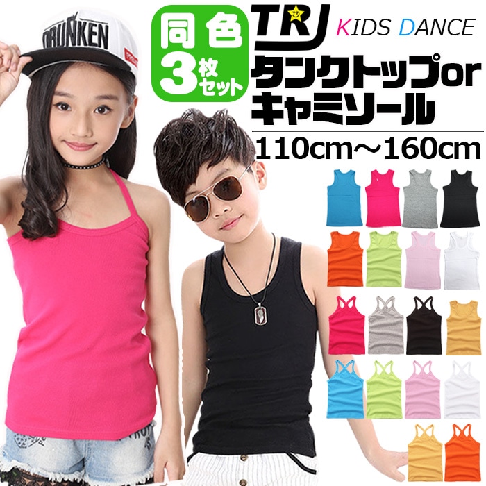 送料無料 正午まで当日発送(土日祝除く)【訳あり】3枚セット タンクトップ キャミソール 女の子 男の子 子供服 キッズ 無地 9...