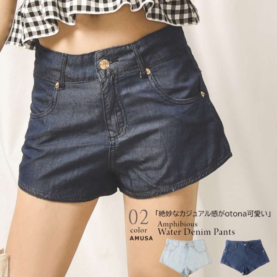 大人かわいい 大人可愛い デニムパンツ 人気 大人 体型カバー ママ水着 ビキニ カバー アウトドア 無地 ウォーターデニム ショ...