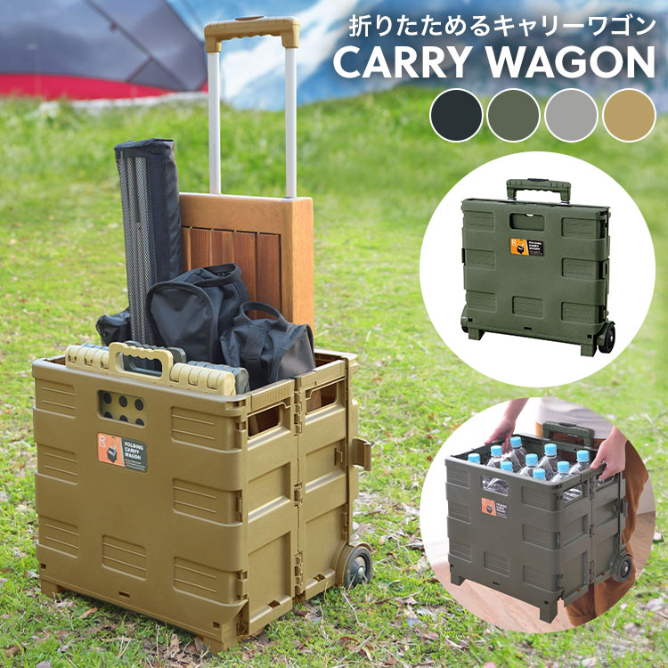 キャリーワゴン 軽量 折りたたみ コンテナ コンパクト キャリーカート 大容量 ブラック グリーン グレー ベージュ ロック付き ...