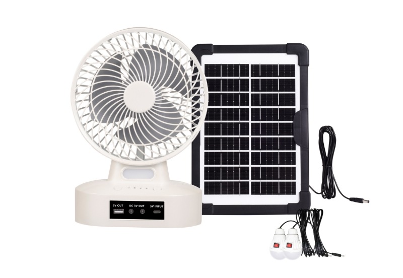 充電式扇風機(17.8cm) バッテリー内蔵 ソーラー対応 高輝度LEDライト付