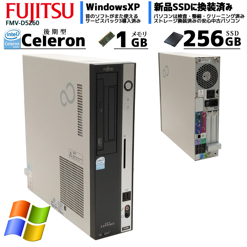 中古パソコン 富士通 FMV-D5260 WindowsXP Celeron 430 メモリ1GB SSD256GB DVDROM...