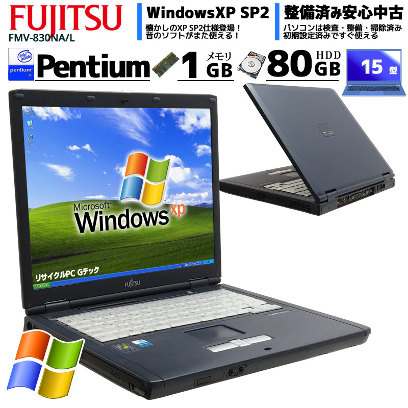 中古ノートパソコン 富士通 FMV-830NA/L WindowsXP Pentium M730 メモリ1GB HDD80GB D...