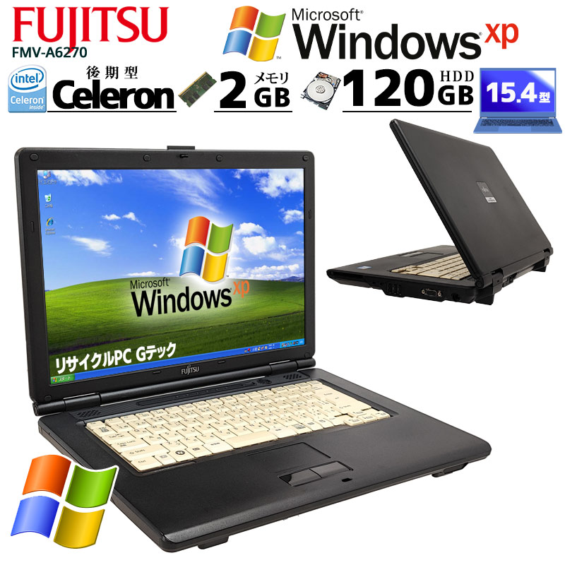 中古ノートパソコン 富士通 FMV-A6270 WindowsXP Celeron 575 メモリ2GB HDD120GB DVD...