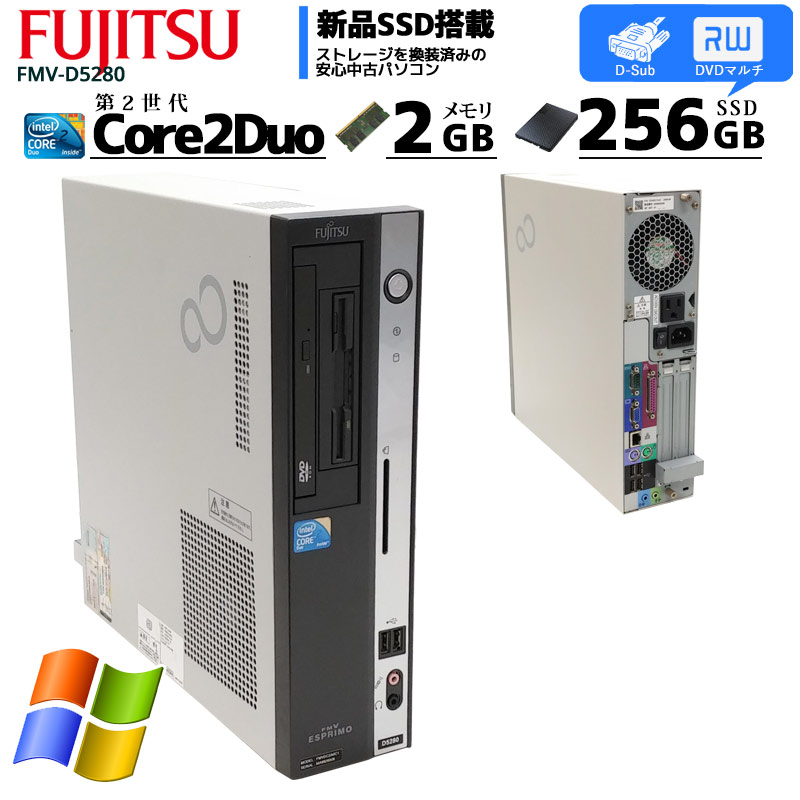 中古パソコン 富士通 FMV-D5280 WindowsXP Core2Duo E7400 メモリ2GB SSD256GB DVD...