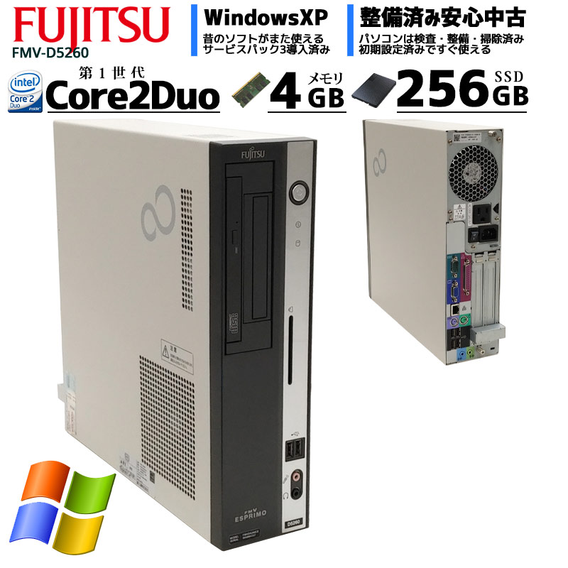 中古パソコン 富士通 FMV-D5260 WindowsXP Core2Duo E4600 メモリ4GB SSD256GB CD-...