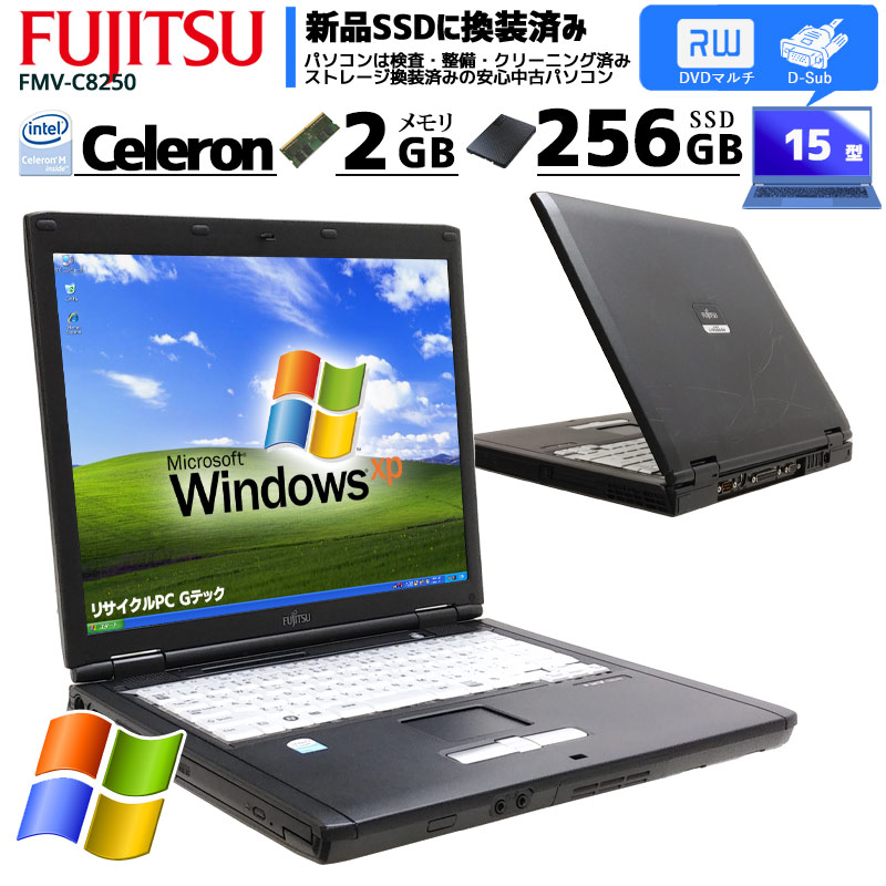 中古ノートパソコン 富士通 FMV-C8250 WindowsXP Celeron M530 メモリ2GB SSD256GB DV...