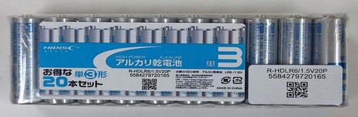 アルカリ乾電池 単3形20本パック HDLR6/1.5V20P
