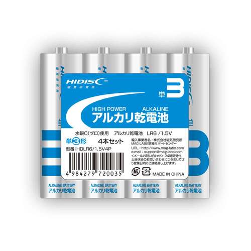 アルカリ乾電池 単3形4本パック HDLR6/1.5V4P