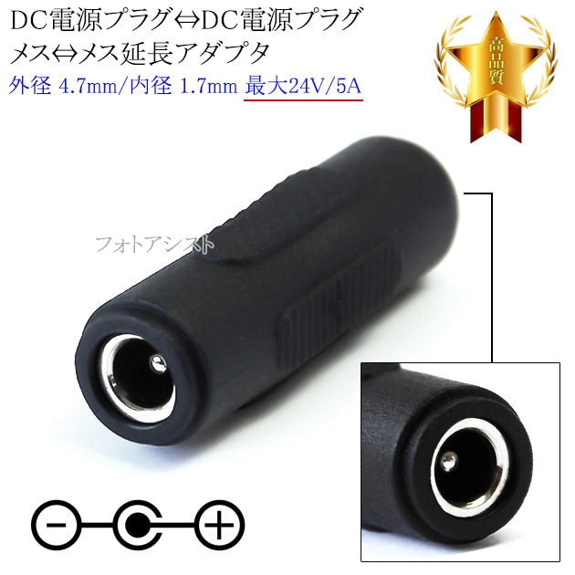 DC電源プラグ⇔DC電源プラグ 延長アダプタ メス⇔メス 外径 4.7mm/内径 1.7mm 最大24V/5A