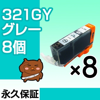 BCI-321GY グレー8個【BCI-321GY増量】【互換インクカートリッジ】キヤノン用【キャノン インク】【永久保証】【送料...