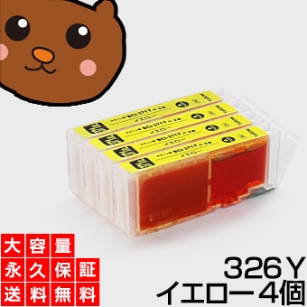 【送料無料】 BCI-326Y イエロー4個 【BCI-326Y増量】 【互換インクカートリッジ】 キヤノン用 【キャノン インク...
