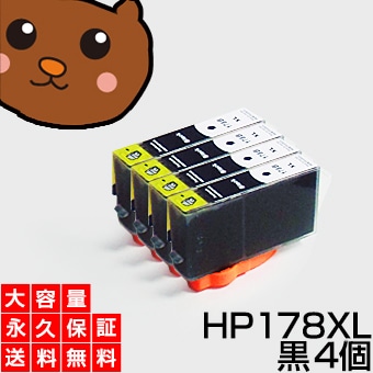 【送料無料】 HP178XLBK ブラック/黒4個 【HP178増量】 【互換インクカートリッジ】 HP 178 インク 【永久保...
