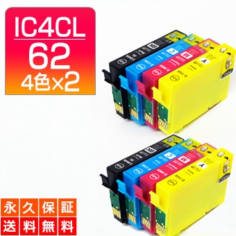IC4CL62 4色セット×2セット【互換インクカートリッジ】EP社 IC62シリーズ【永久保証】EP社 【送料無料】