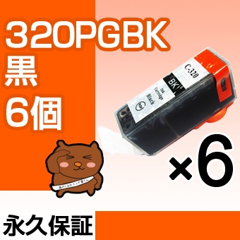 BCI-320PGBK ブラック/黒6個【BCI-320増量】【互換インクカートリッジ】キヤノン用【キャノン インク】【送料無料】