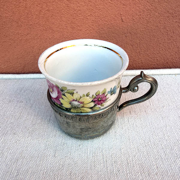 ヨーロッパ買付品 デミタスカップ エスプレッソシルバーウエア洋食器 シルバープレートカバー付き 花柄アンティークコーヒーカップ テ...