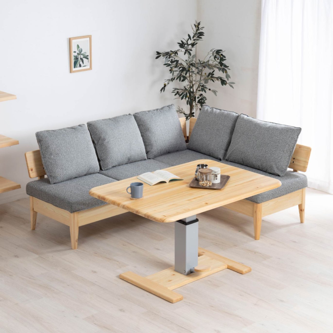 【4点セット】 モイスト | ヒノキ 昇降式テーブル コーナー ソファ ダイニングセット