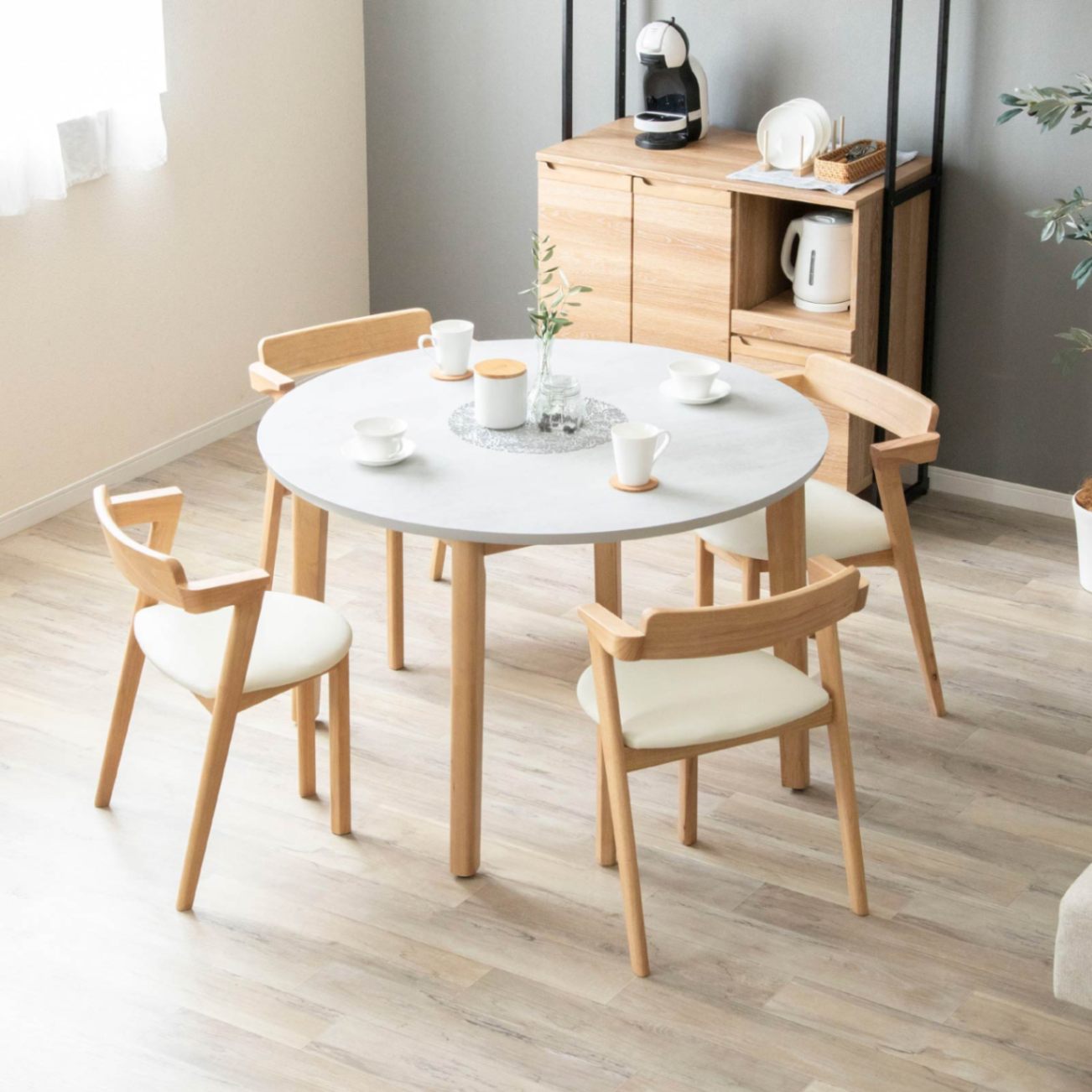 【5点セット】 スカルノ | メラミン化粧板 丸テーブル ダイニングセット