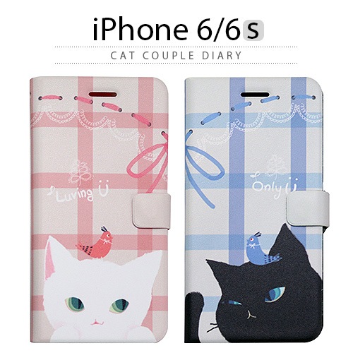 iPhone6s ケース 手帳型 Happymori Cat Couple Diary(ハッピーモリ キャットカップルダイアリー...