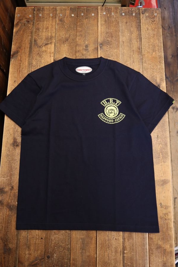 History 7.4ozコットンTee HRT-05 キャッツのオイル♀Tee ネコTシャツ ネイビー×イエロー