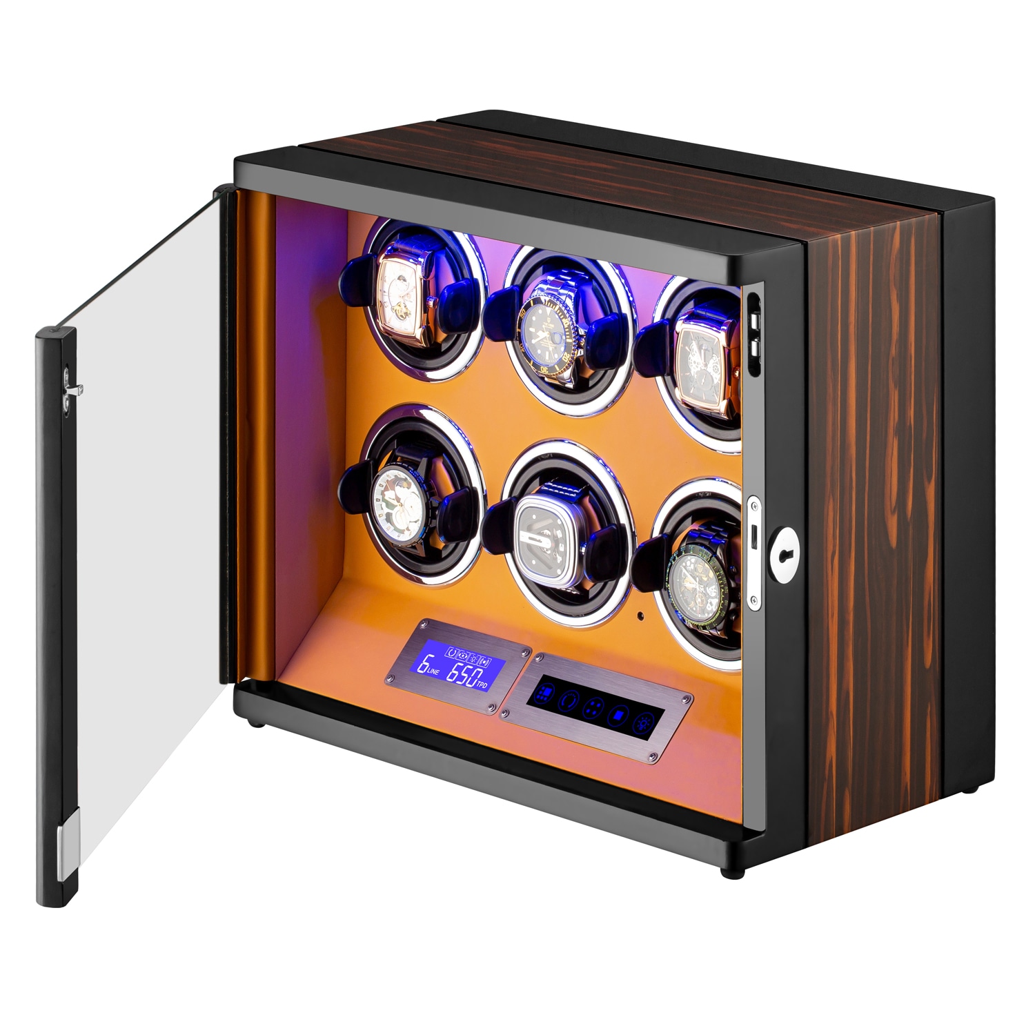 HOKUTO ワインディングマシーン 腕時計自動巻き器 ウォッチワインダー 6本巻き上げLEDライト付き 超静音