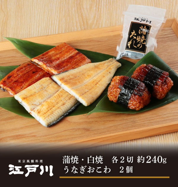 [送料込み]⑲静岡県産 鰻蒲焼2切(約65g×2)、鰻白焼2切(約55g×2)、国産うなぎおこわ(70g×2)【江戸川】