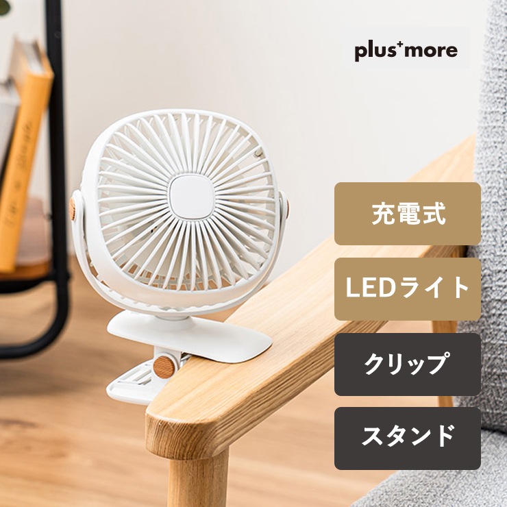 [MO-F025-LW] plus more(プラスモア) 充電式2wayクリップライトファン リリーホワイト★