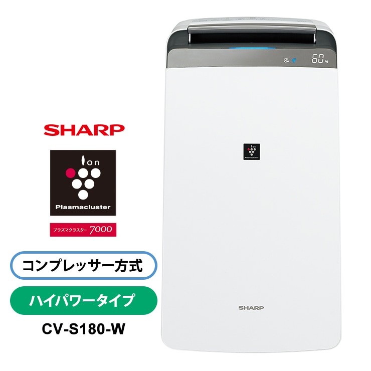 [CV-S180-W] 衣類乾燥除湿機 ハイパワータイプ プラズマクラスター7000 ホワイト系★
