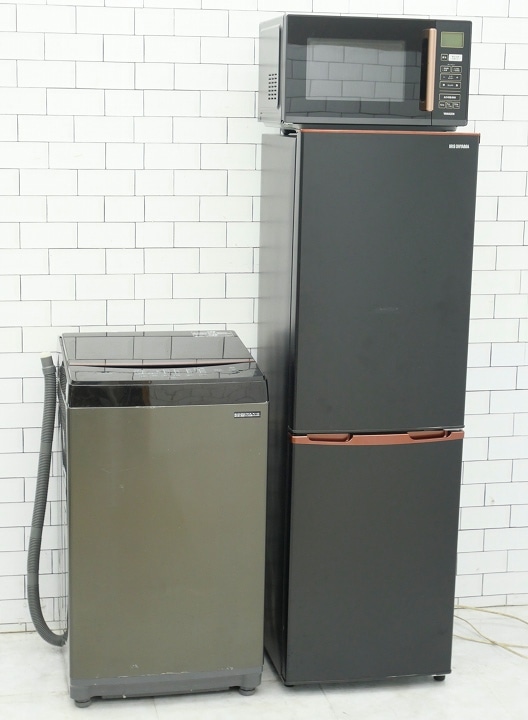 135L、5kg/23年、23年、20年製/アクア、アイリスオーヤマ、山善製/(冷蔵庫、洗濯機、オーブンレンジ)中古家電3点セット