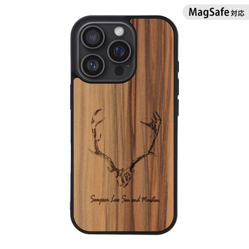 [iPhone 16 / 16 Pro 用] MagSafe対応 天然木ケース ウッドディアホーン