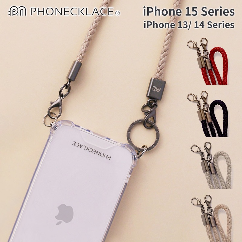 PHONECKLACE [ iPhone 15 / 15 Pro 用] ロープ ショルダー ストラップ付き クリアケース スマホシ...