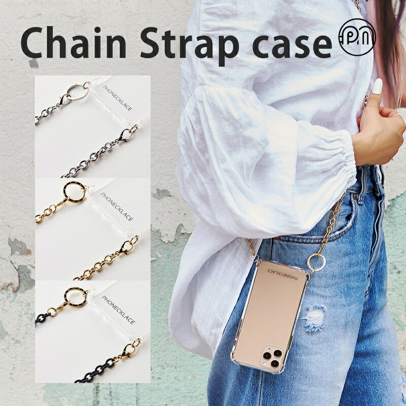 iPhone SE3 ケース スマホショルダー クリア バックカバー Phonecklace チェーンショルダーストラップ付き ...