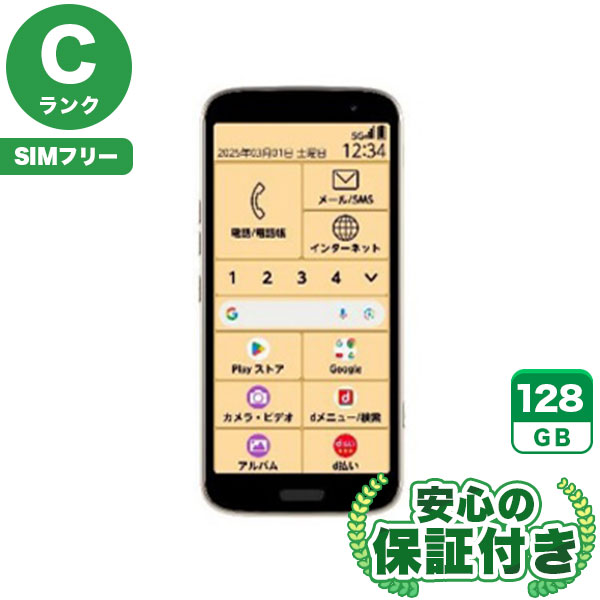 【SIMフリー】らくらくスマートフォン F-53E ゴールド [128GB] 本体 [Cランク] |中古Androidスマホ 当社...