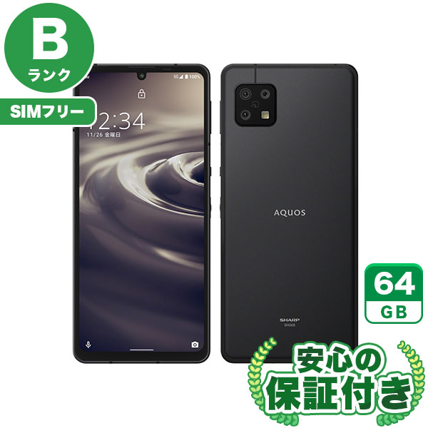 【SIMフリー】AQUOS sense6 SHG05 ブラック [64GB] 本体 [Bランク] |中古Androidスマホ 当社...