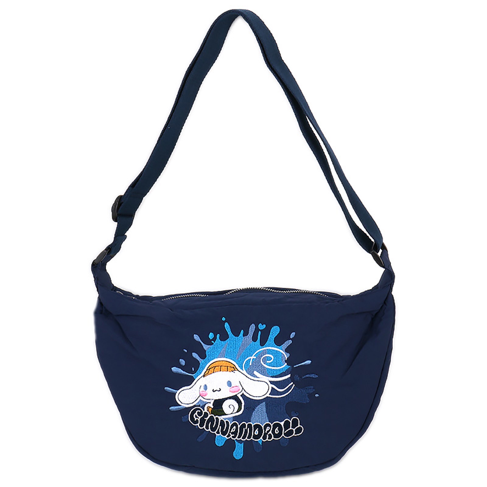 シナモロール 刺しゅうラウンドショルダーバッグ 軽量ナイロン ネイビー 紺 シンプル 刺繍 サンリオ sanrio キャラクター