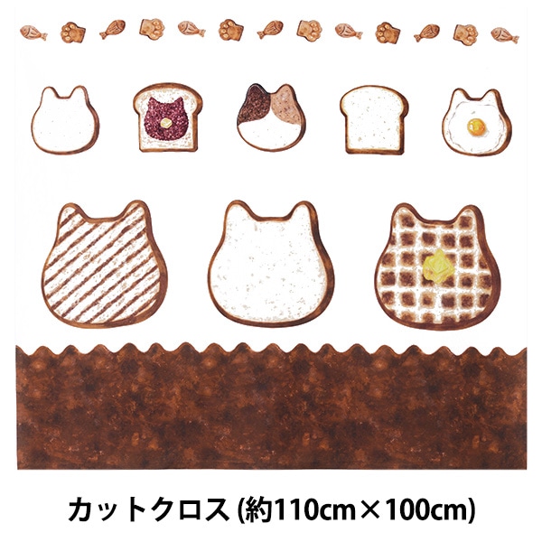生地 『シーチング アニマルブレッドネコ食パン カットクロス 約110cm×100cm YPA-59020-1A』 KOKKA コ...