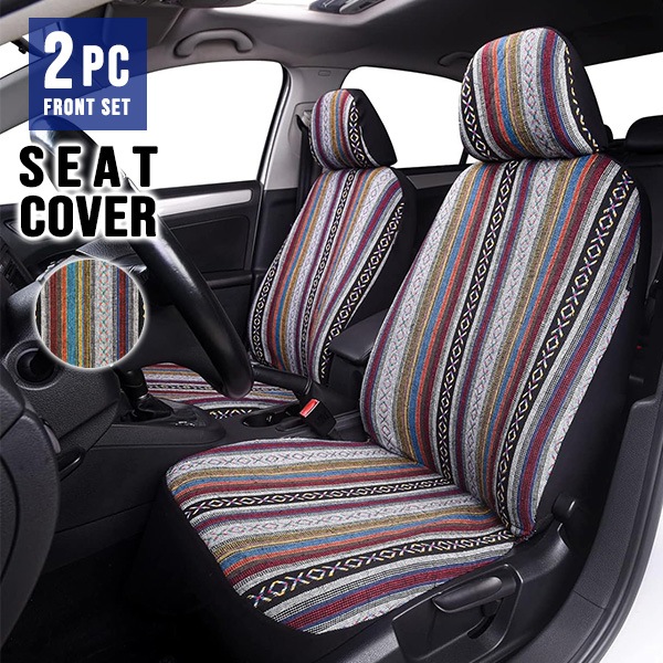 バハブランケット シートカバー 2点セット 運転席 助手席 セット ヘッド別 グレー ヘッドレスト シンプル ストライプ baja...