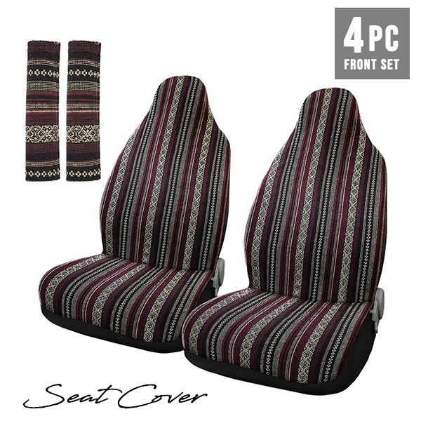 バハブランケット シートカバー 4点セット 運転席 助手席 セット レッド シートベルトパッド シンプル ストライプ bajabl...