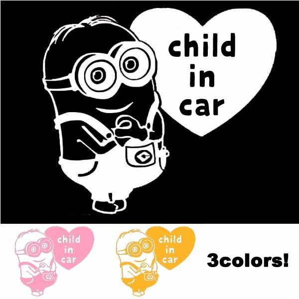 ステッカー ミニオンズ child in car ハート 全3色 ホワイト イエロー ピンク カッティングステッカー 車 バイク ...