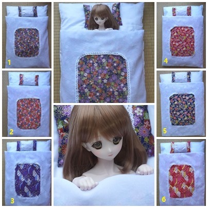 即納品KM1328【SEN】1/4~1/3ド-ル用ベッド+布団など4点セット(50x60)