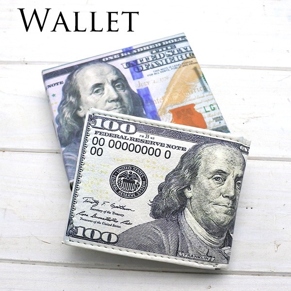 $100札柄 フェイクレザー 2つ折り財布 アメリカ輸入品 アメリカン 合皮素材 ウォレット 100ドル $100紙幣 アメリカ紙...