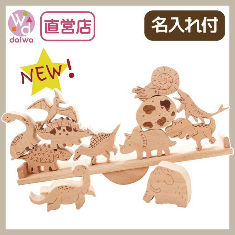 名入れ付き・TsumiTsumiシーソー《恐竜》 《専用BOX*ラッピング不可》 【木製おもちゃのだいわ直営店】