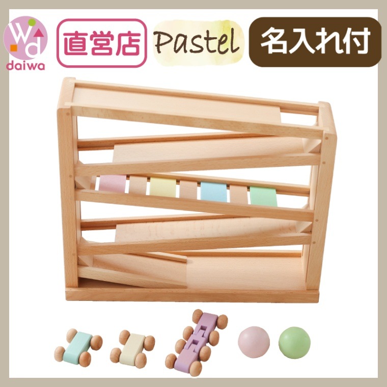 [名入れ付き]吊橋ミニコースター(パステルカラー)★《専用BOX*包装不可》 木のおもちゃ(うごかす)