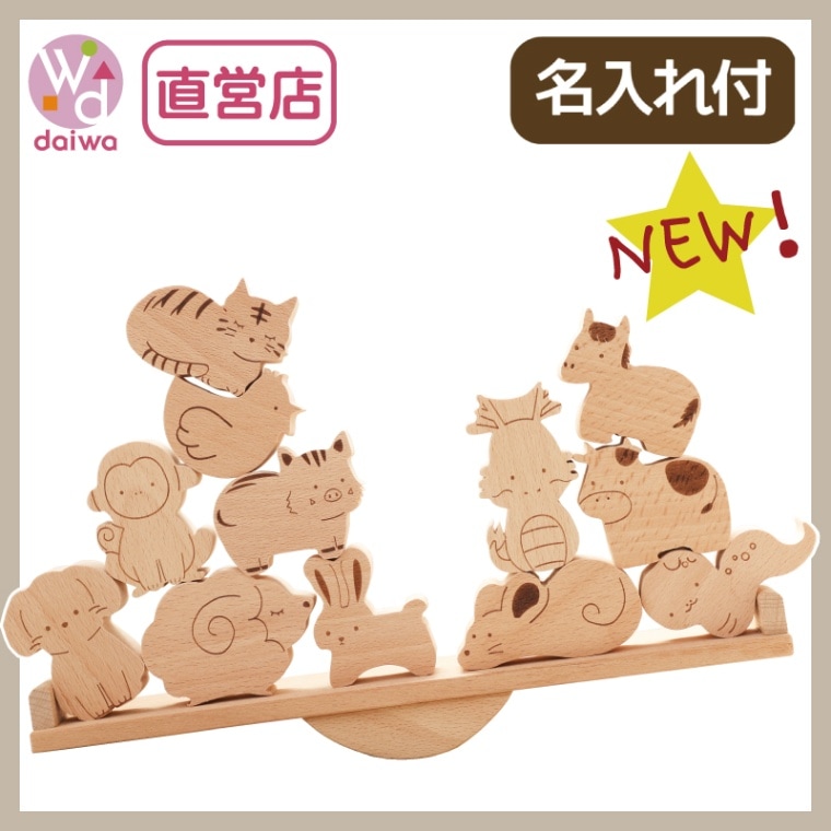 名入れ付き・TsumiTsumiシーソー《干支》 《専用BOX*ラッピング不可》 【木製おもちゃのだいわ直営店】