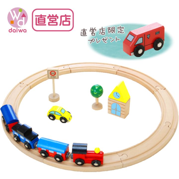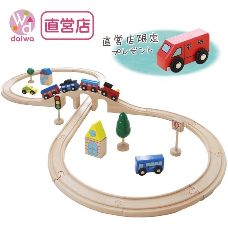 《present郵便車付き》汽車レールセットベーシック 13pcs 木のおもちゃ(木製汽車レール)