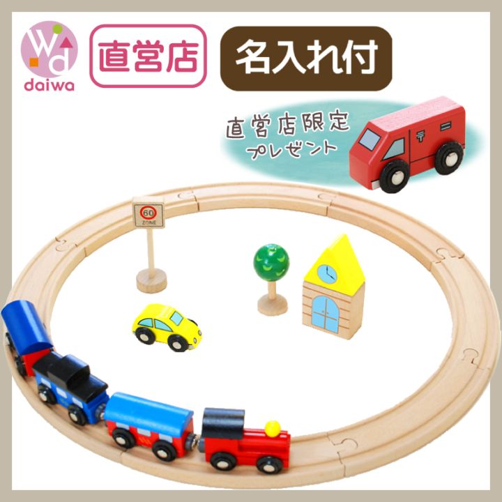 《present郵便車付き》名入れ付き・汽車レールセットベーシック 13pcs 木のおもちゃ(木製汽車レール)