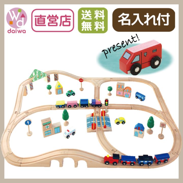 《present郵便車付き》名入れ付き・汽車レールセットアドバンス 51pcs《専用BOX*包装不可》 木のおもちゃ(木製レール)