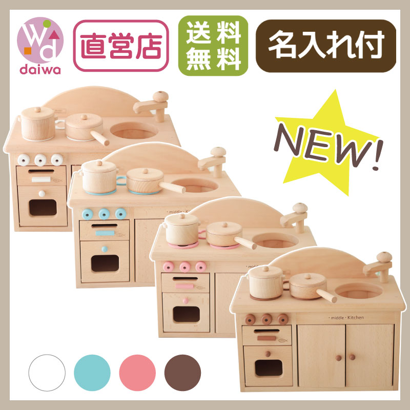 カラーが選べる!名入れ付き・ミドルキッチンセット《専用BOX*包装不可》 (木のおもちゃ ままごと)