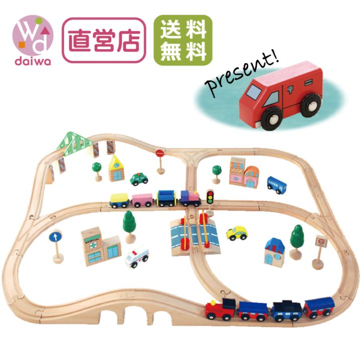 《present郵便車付き》汽車レールセットアドバンス 51pcs《専用BOX*包装不可》 木のおもちゃ(木製レール)