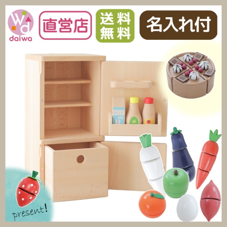 《presentケーキいちご》&《いちご付き》★名入れ付き・ミニキッチン(白)スタートセット《専用BOX*包装不可》 (木のおもち...