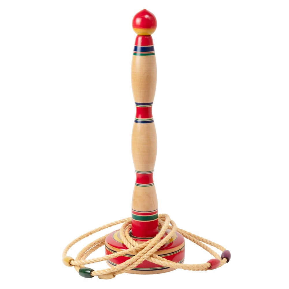 【昔のおもちゃ・木地玩具】輪投げ 特大・高さ50cm 輪5個付き 山形県の木地玩具 ※色・柄はお選びいただけません